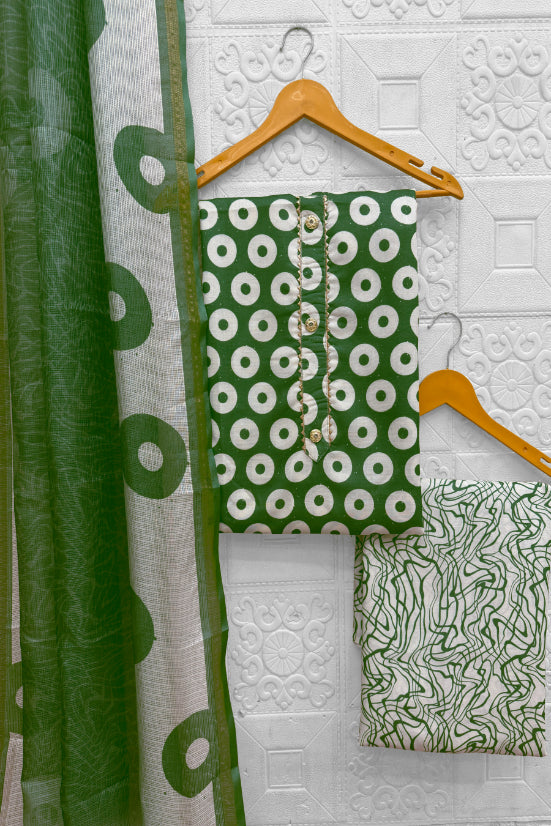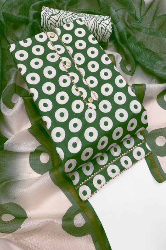 Cotton Blend Printed Suit Set with Kota Doria Dupatta for Women’s Unstitched (Top 2.5m | Bottom 2.5m | Dupatta 2.25m)