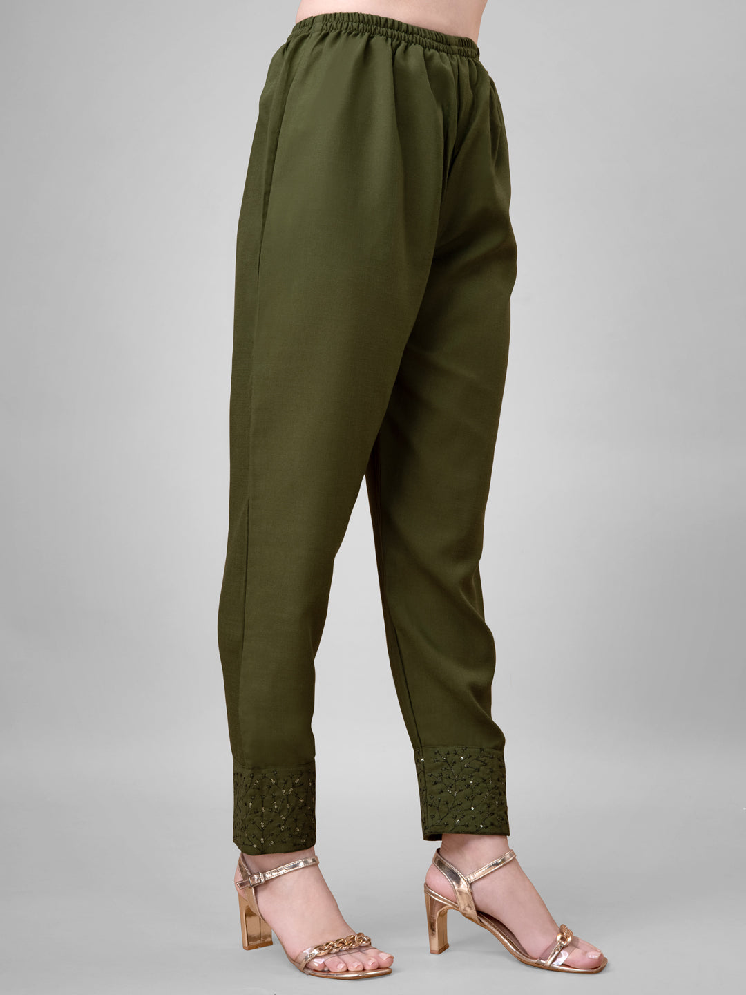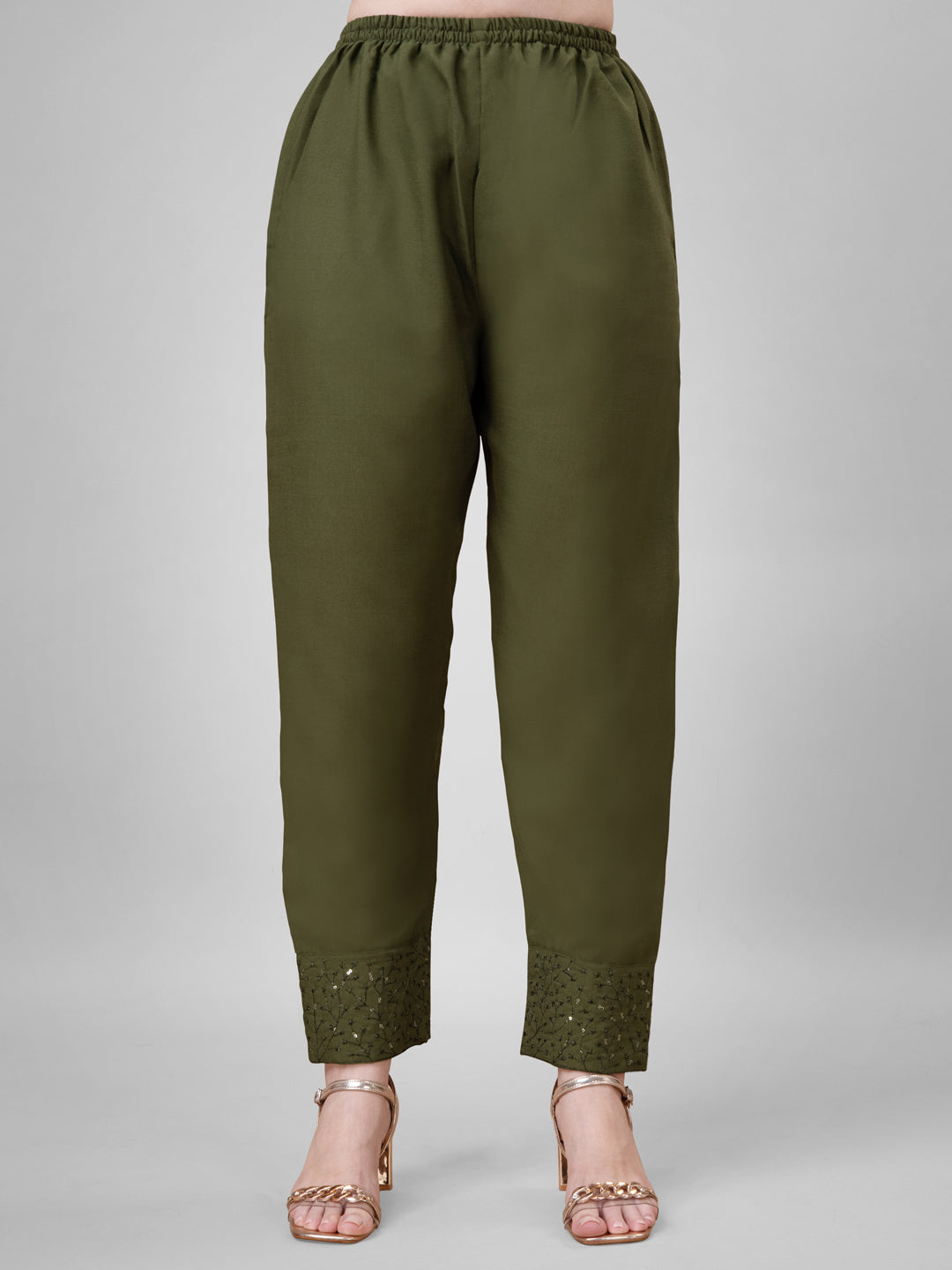 Cotton Blend Kurti Pant Dupatta Set with Elegant Embroidery & Sequence Work